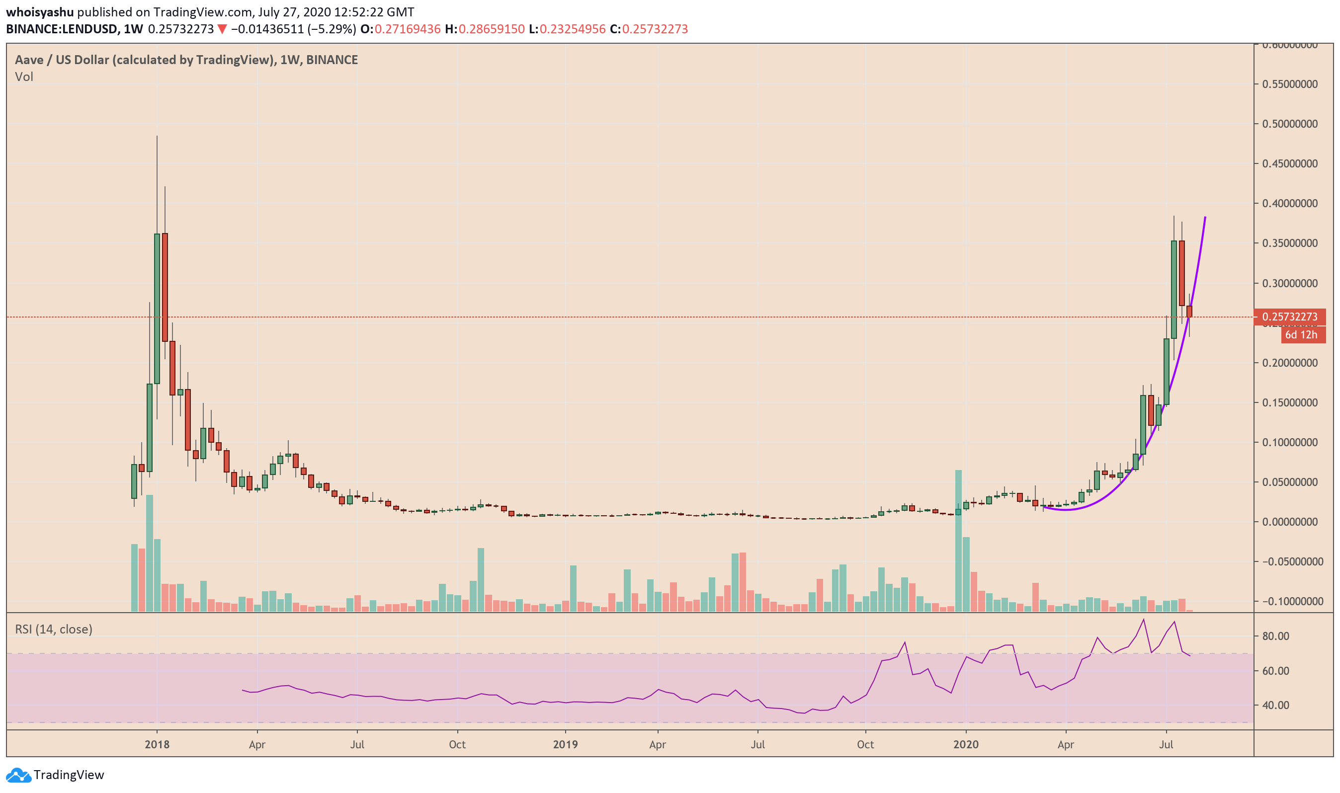 LEND previous parabolic trend resulted in a 100 percent wipeout. Source: TradingView.com