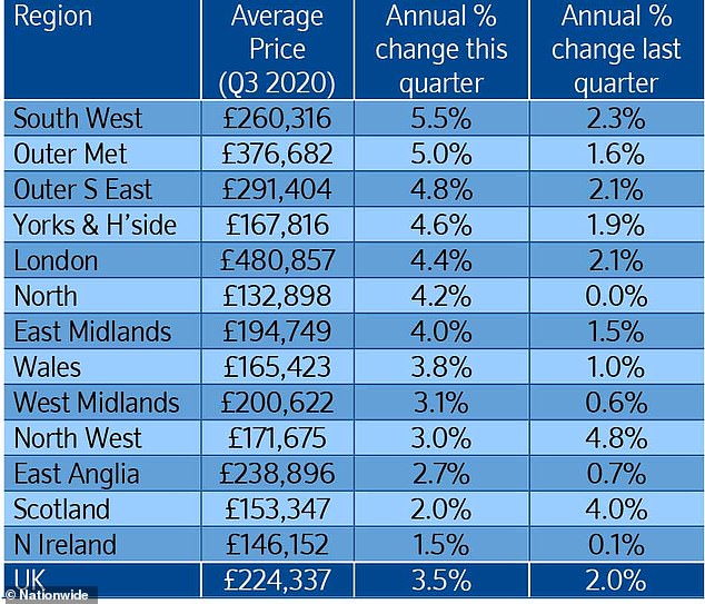 All regions across the country saw house prices increase between July and September, with the highest growth occurring in the South West, where annual price growth was 5.5 per cent.