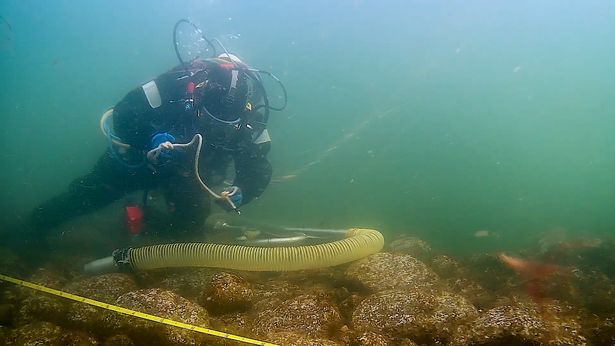 Johansen said: “We found an oval pile of stones - ship-shaped, you could say - that were densely overgrown with seaweed.