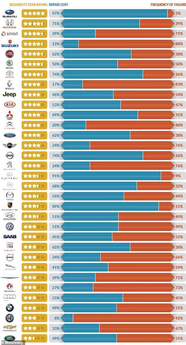 It found that Subarus were the most dependable, while Alfa Romeos and Land Rovers were generally likely to go wrong.